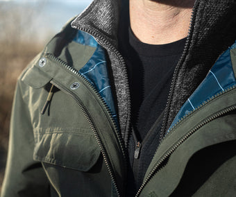 - 50% Recycled Polyester/ 50% Polyester canvas shell jacket